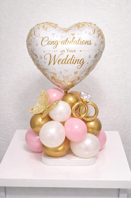 Rental Stunning wedding centerpiece featuring elegant balloons, decorative props, and a stylish stand. Fully customizable to match your wedding colors and theme. Perfect for guest tables, sweetheart tables, or photo backdrops.